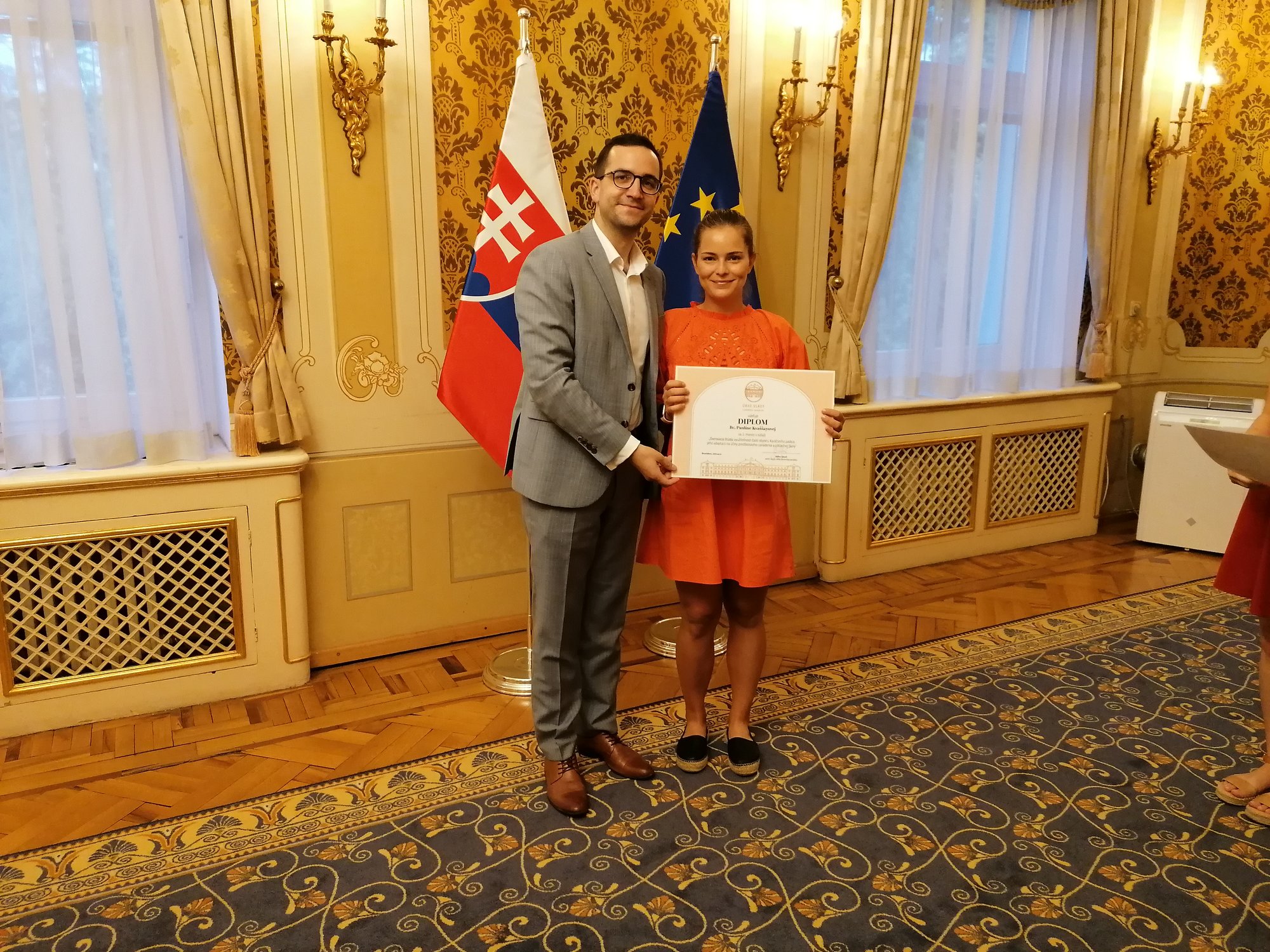 Študentky Fakulty architektúry a dizajnu STU v Bratislave privítal dňa 28. júna na Úrade vlády SR vedúci Úradu vlády SR Ing. Július Jakab, ktorý im odovzdal diplomy za 1 miesto v súťaži: