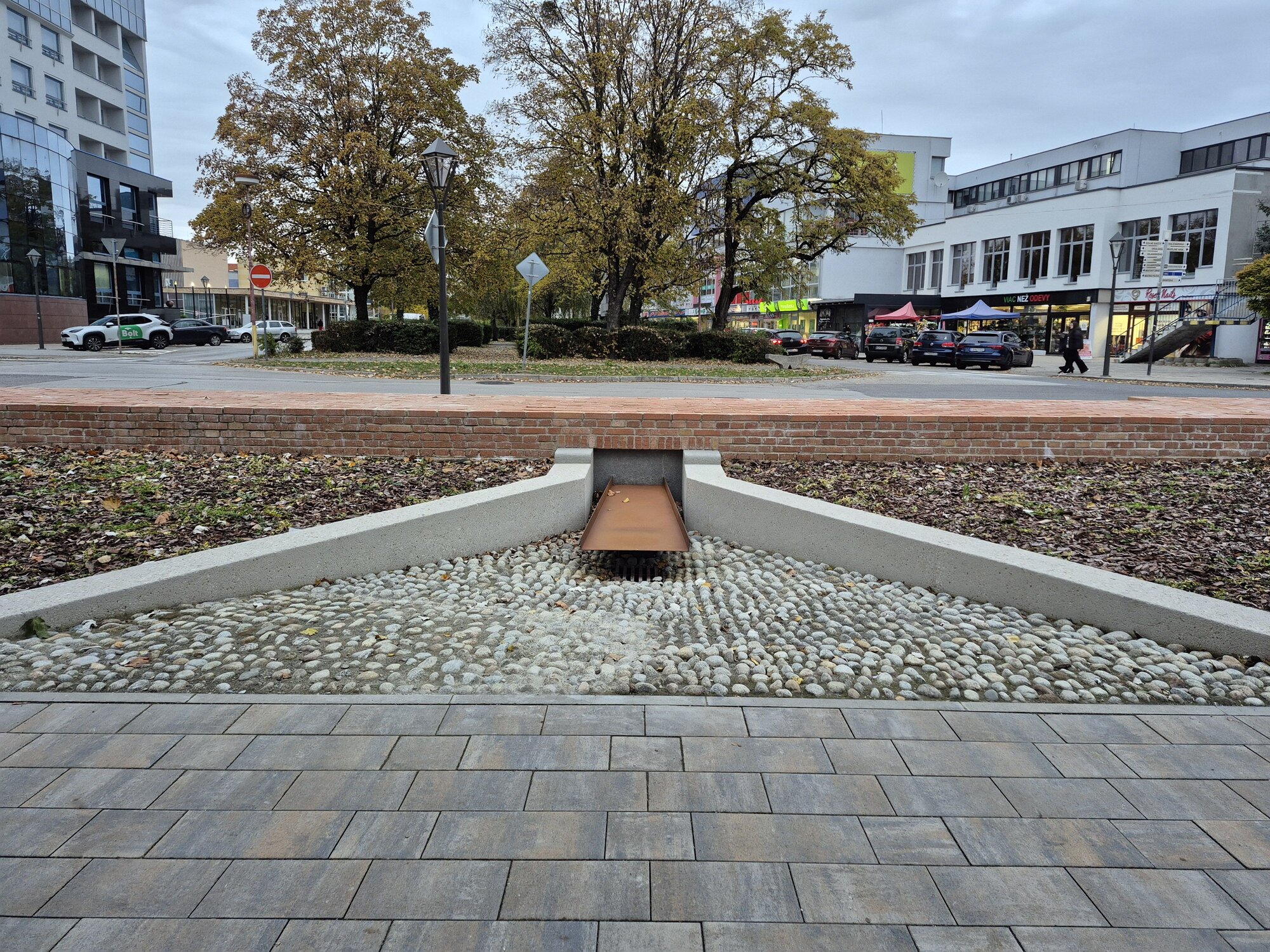 Realizácia spodnej stavby tehlového múrika s náznakom vodného náhonu pod cortenovú kurtínu, Trnava (autori: Gregorová, Vojteková, Hanzl)